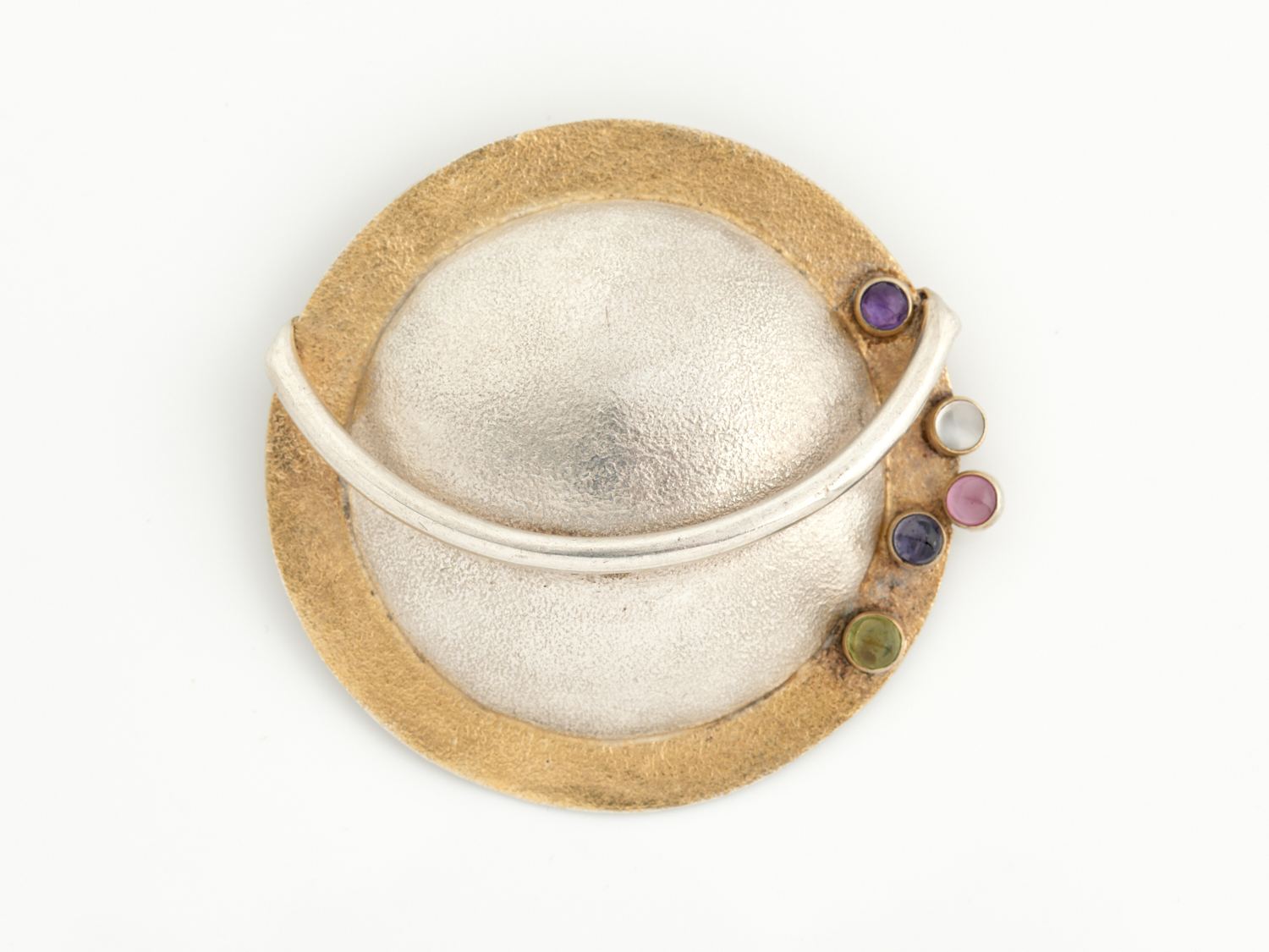 A VINTAGE GEM-SET BROOCH IN STERLING SILVER AND SILVER GILT, 55MM