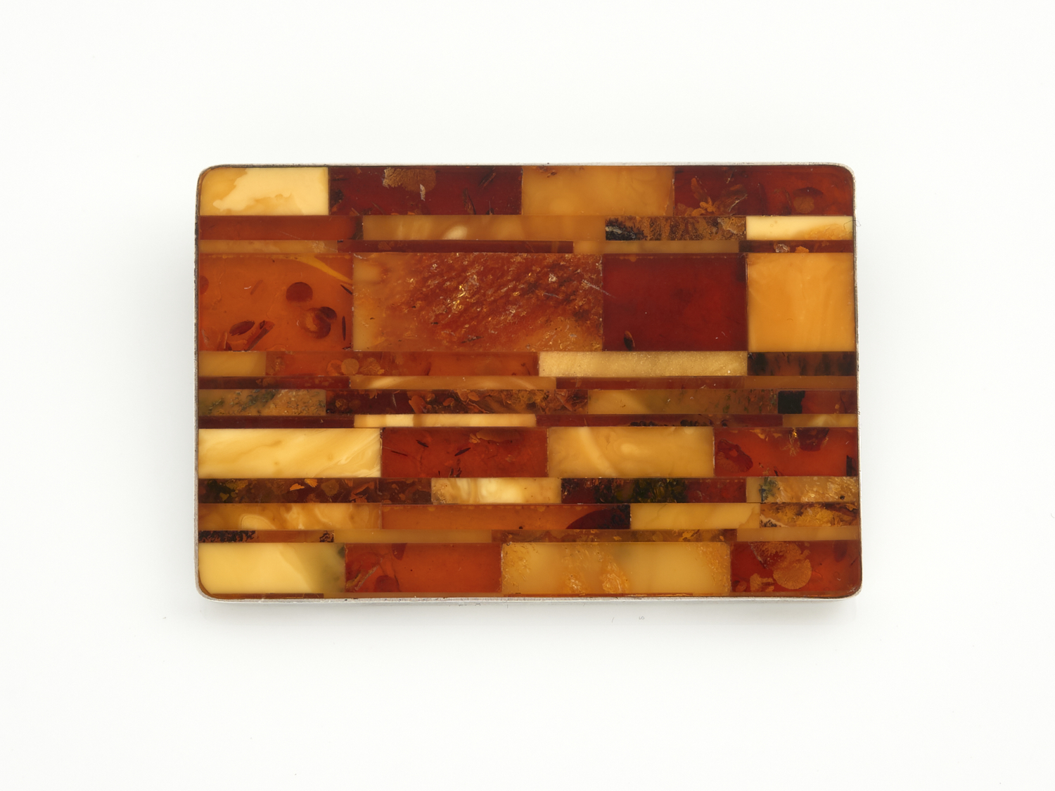 A VINTAGE AMBER BROOCH IN STERLING SILVER, 55 X 35MM