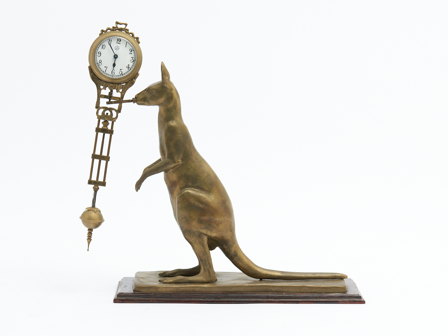 A REPRODUCTION KANGAROO MYSTERY CLOCK H.23CM, LEONARD JOEL DELIVERY SIZE: MEDIUM