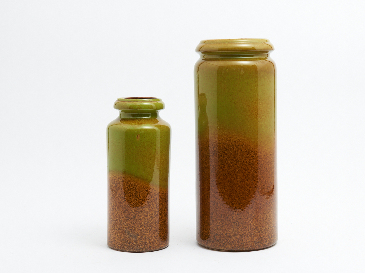 A PAIR OF WEST GERMAN GLAZED POTTERY SIGNED VASES H.42CM (TALLEST), LEONARD JOEL DELIVERY SIZE: LARGE