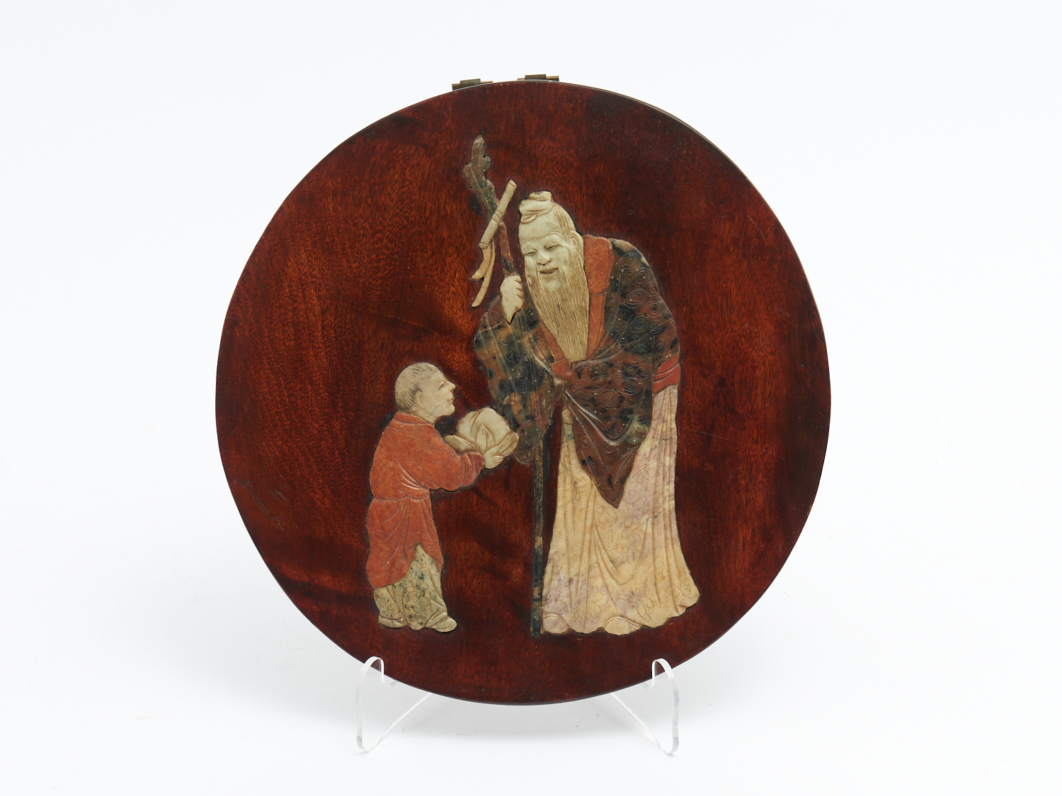 A CHINESE HARDSTONE AND ROSEWOOD CIRCULAR PLAQUE DIA.25CM, LEONARD JOEL DELIVERY SIZE: MEDIUM