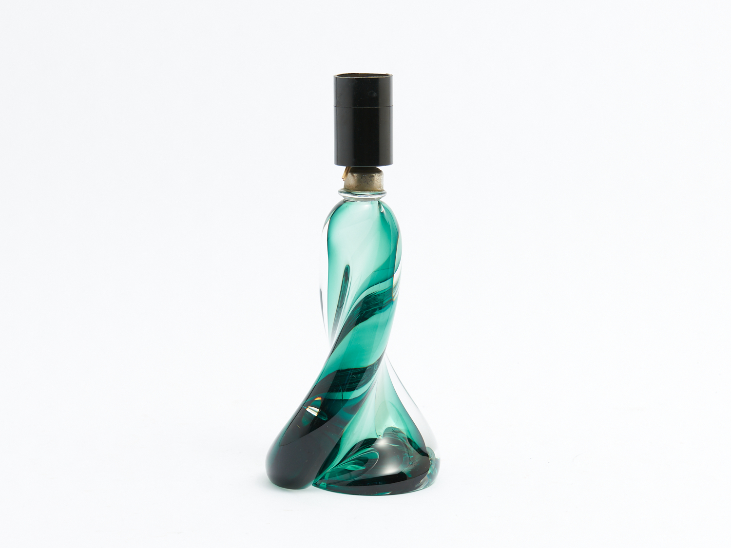 A SIGNED VAL ST LAMBERT RETRO GREEN AND CLEAR CASED TABLE LAMP H.27.5CM, LEONARD JOEL DELIVERY SIZE: MEDIUM