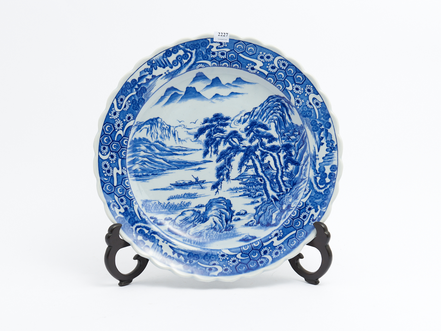A LARGE 20TH CENTURY SIGNED CHINESE BLUE AND WHITE LANDSCAPE CHARGER DIA.40.5CM, LEONARD JOEL DELIVERY SIZE: LARGE