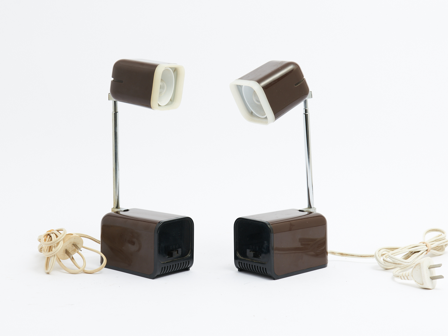 A PAIR OF VINTAGE RETRO BROWN TELESCOPIC DESK LAMPS H.26CM (NOT EXTENDED), LEONARD JOEL DELIVERY SIZE: SMALL