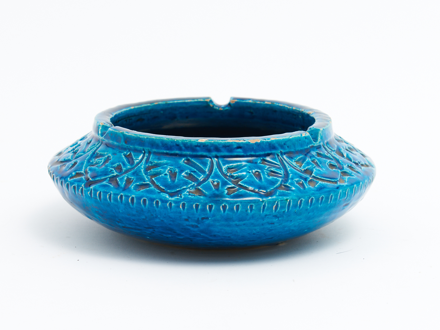 A SIGNED BITOSSI BLUE GLAZED CIRCULAR BOWL (A/F) DIA.20CM, LEONARD JOEL DELIVERY SIZE: SMALL