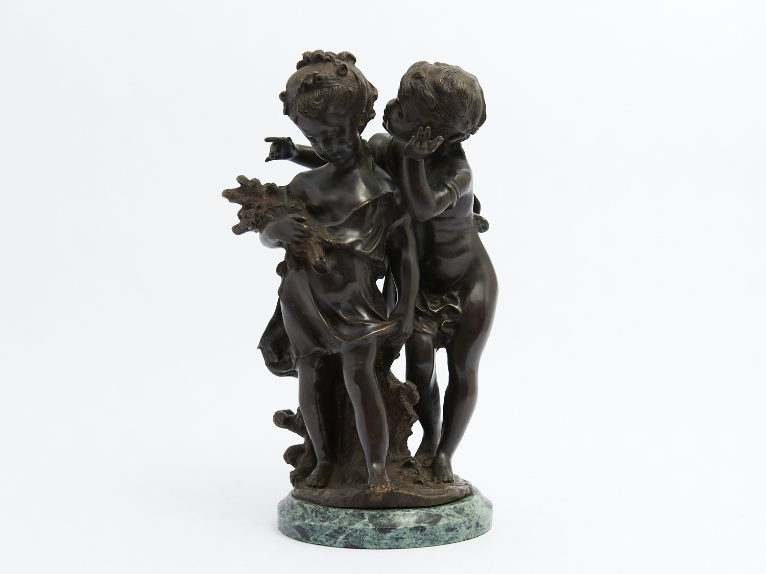 AN ANTIQUE BRONZE FIGURAL GROUP SIGNED BY AUG MOREAU OF TWO LOVERS ON ORIGINAL VERDE MARBLE BASE H.43.5CM, LEONARD JOEL DELIVERY SIZE: LARGE
