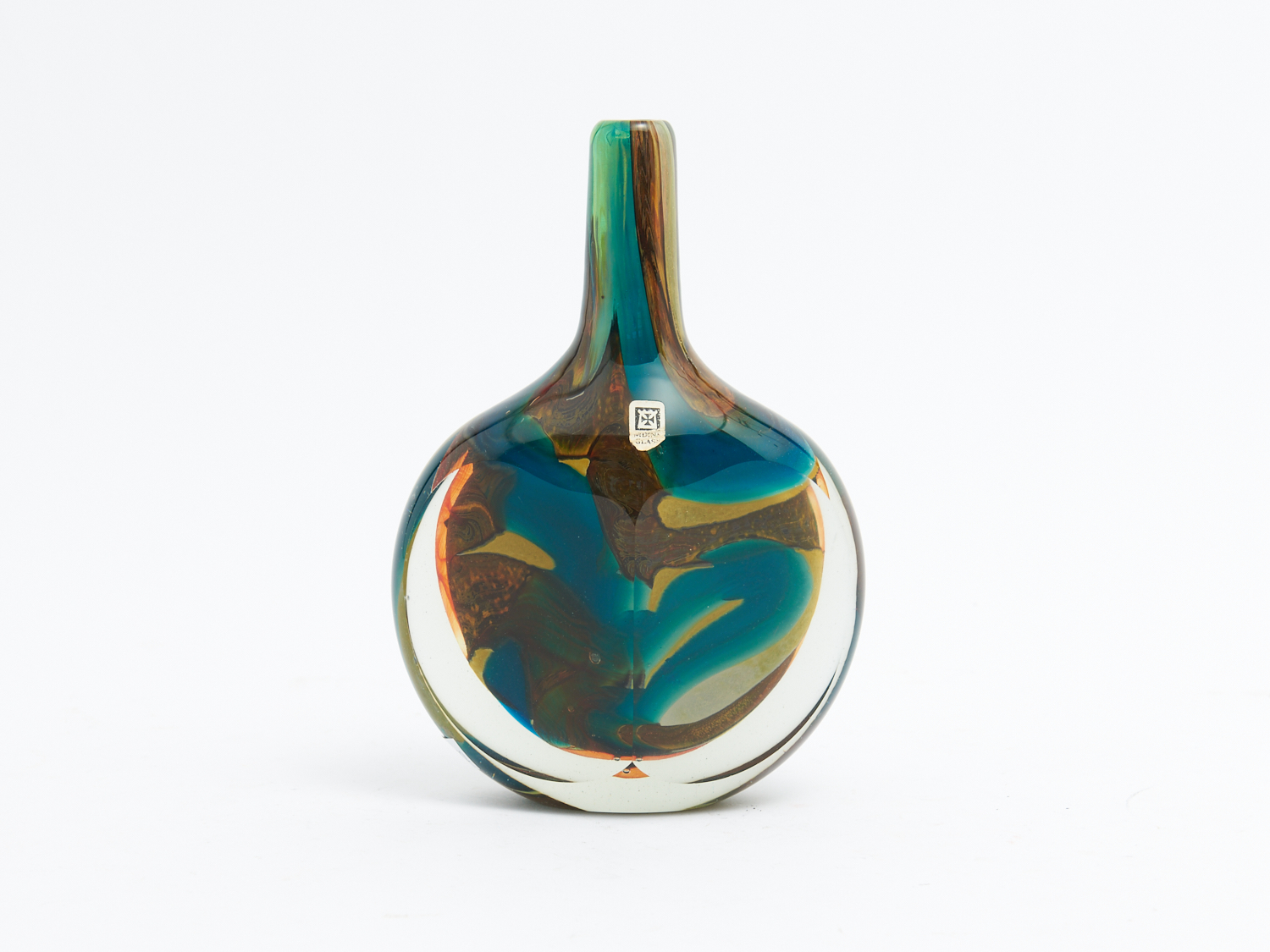 A SIGNED AND LABELLED MDINA GLASS VASE H.19CM, LEONARD JOEL DELIVERY SIZE: MEDIUM