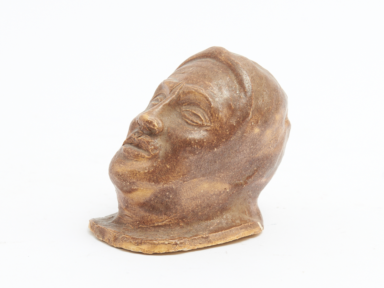 A VINTAGE AUSTRALIAN GLAZED POTTERY HEAD BY OLA COHEN H.9CM, LEONARD JOEL DELIVERY SIZE: SMALL