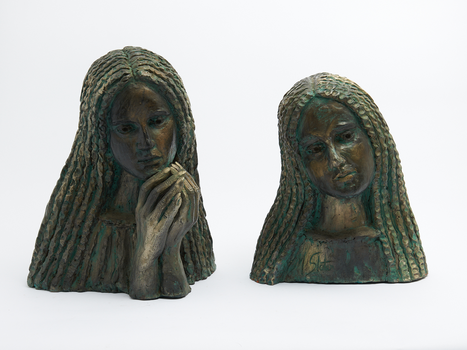 A PAIR OF SIGNED RETRO AUSTRALIAN GLAZED TERACOTTA FIGURAL BUSTS H.45CM (TALLEST), LEONARD JOEL DELIVERY SIZE: X-LARGE