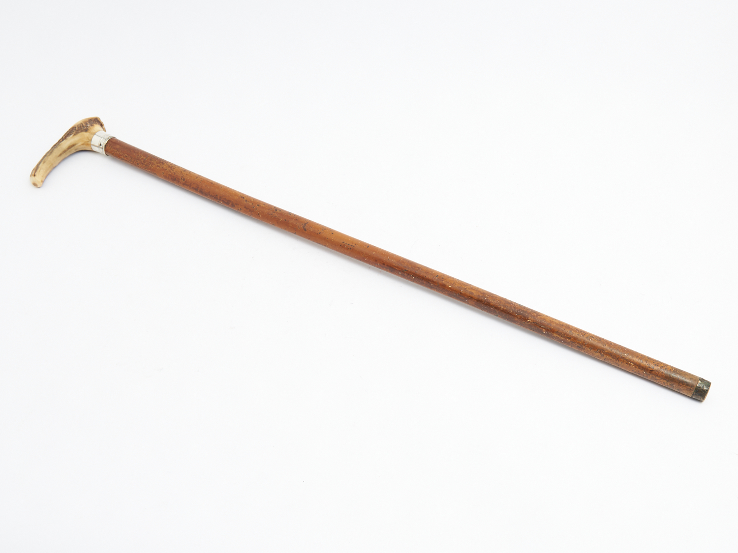 A 1886 SILVER AND ANTLER HANDLED WALKING STICK WITH MELBOURNE PRESENTATION INSCRIPTION L.90CM, LEONARD JOEL DELIVERY SIZE: MEDIUM