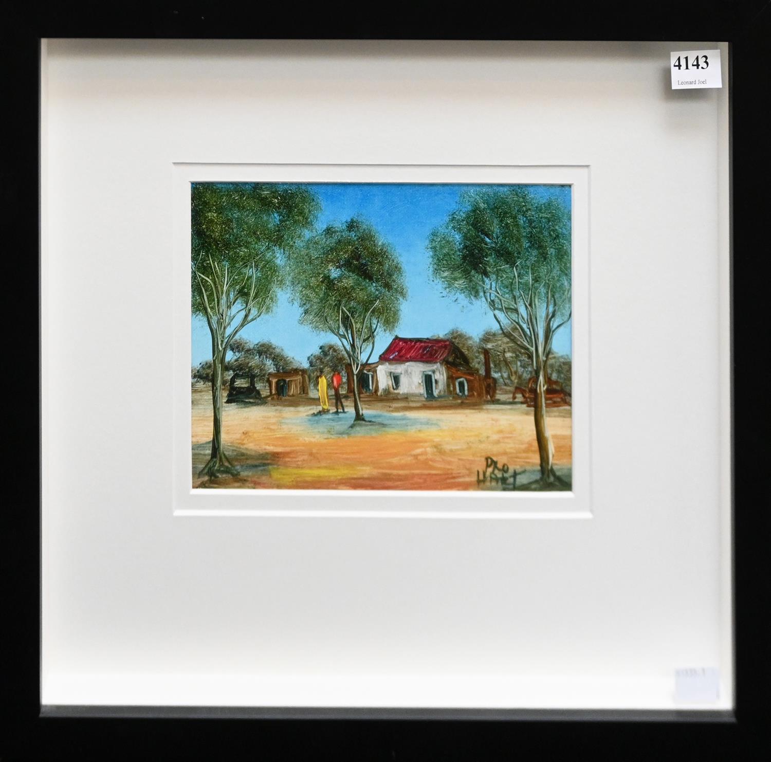 § PRO HART, (FARM HOUSE), OIL ON CANVASBOARD, SIGNED LOWER RIGHT, 14 X 19.5CM, FRAME SIZE: 35 X 39CM