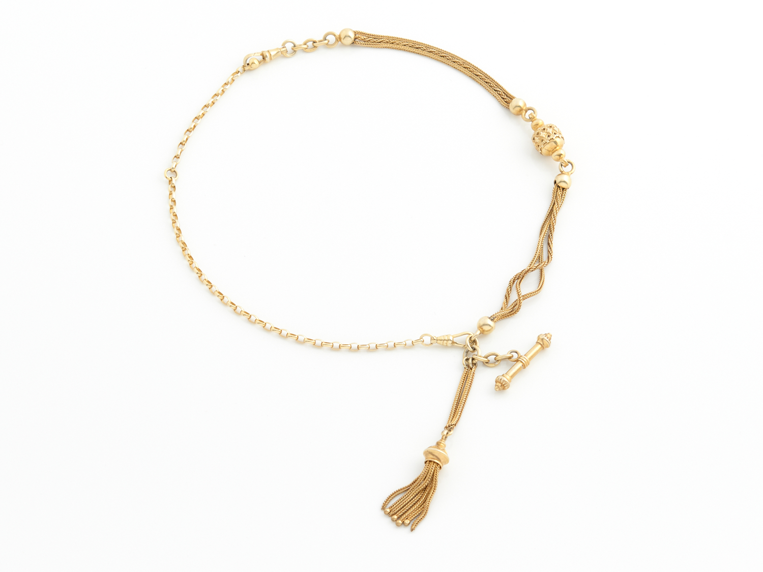 A GUARD CHAIN IN GOLD PLATE, 50MM, 26.3GMS