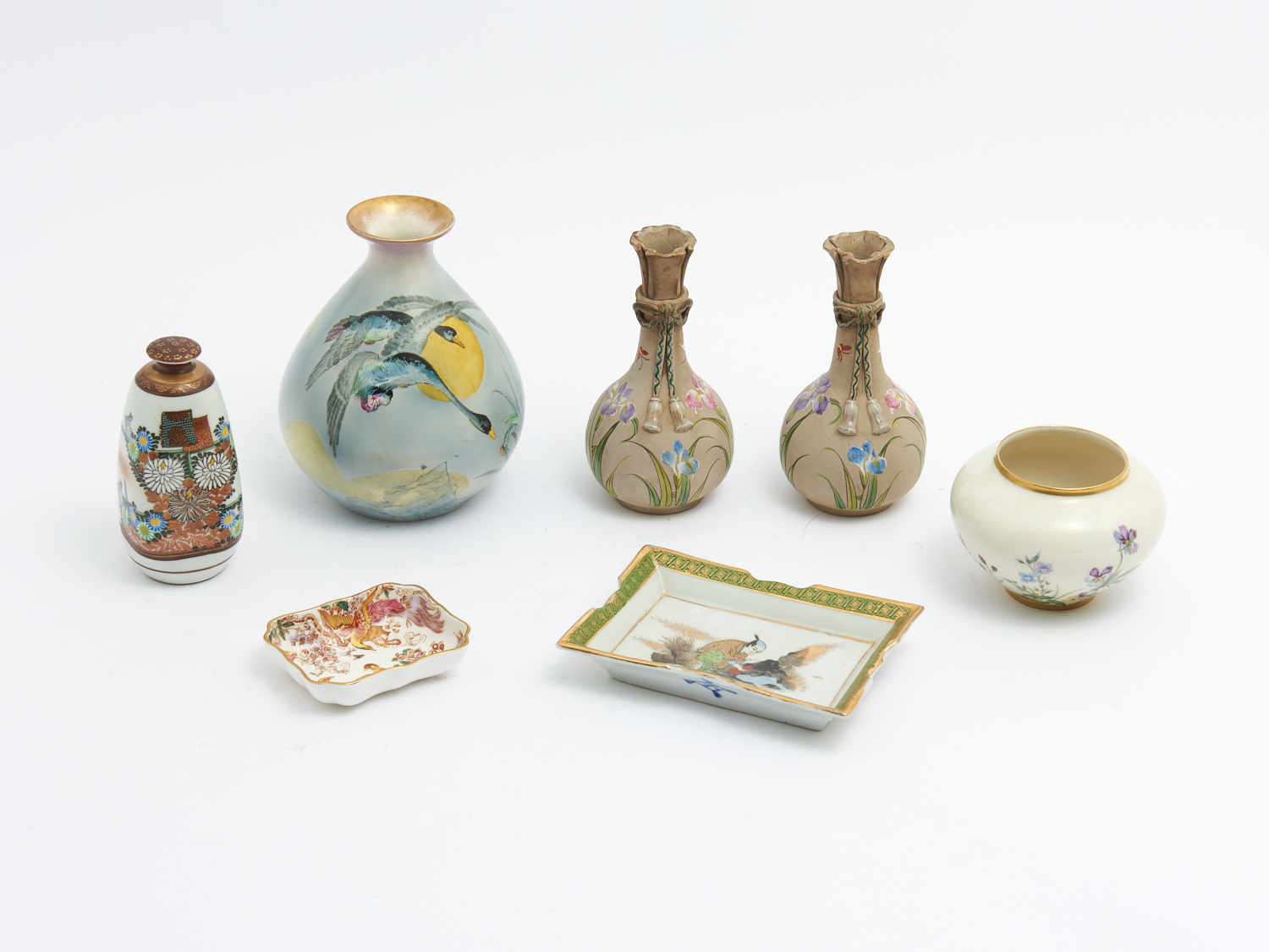 A COLLECTION OF PORCELAIN INCLUDING JAPANESE VASES H.17CM (TALLEST), LEONARD JOEL DELIVERY SIZE: MEDIUM