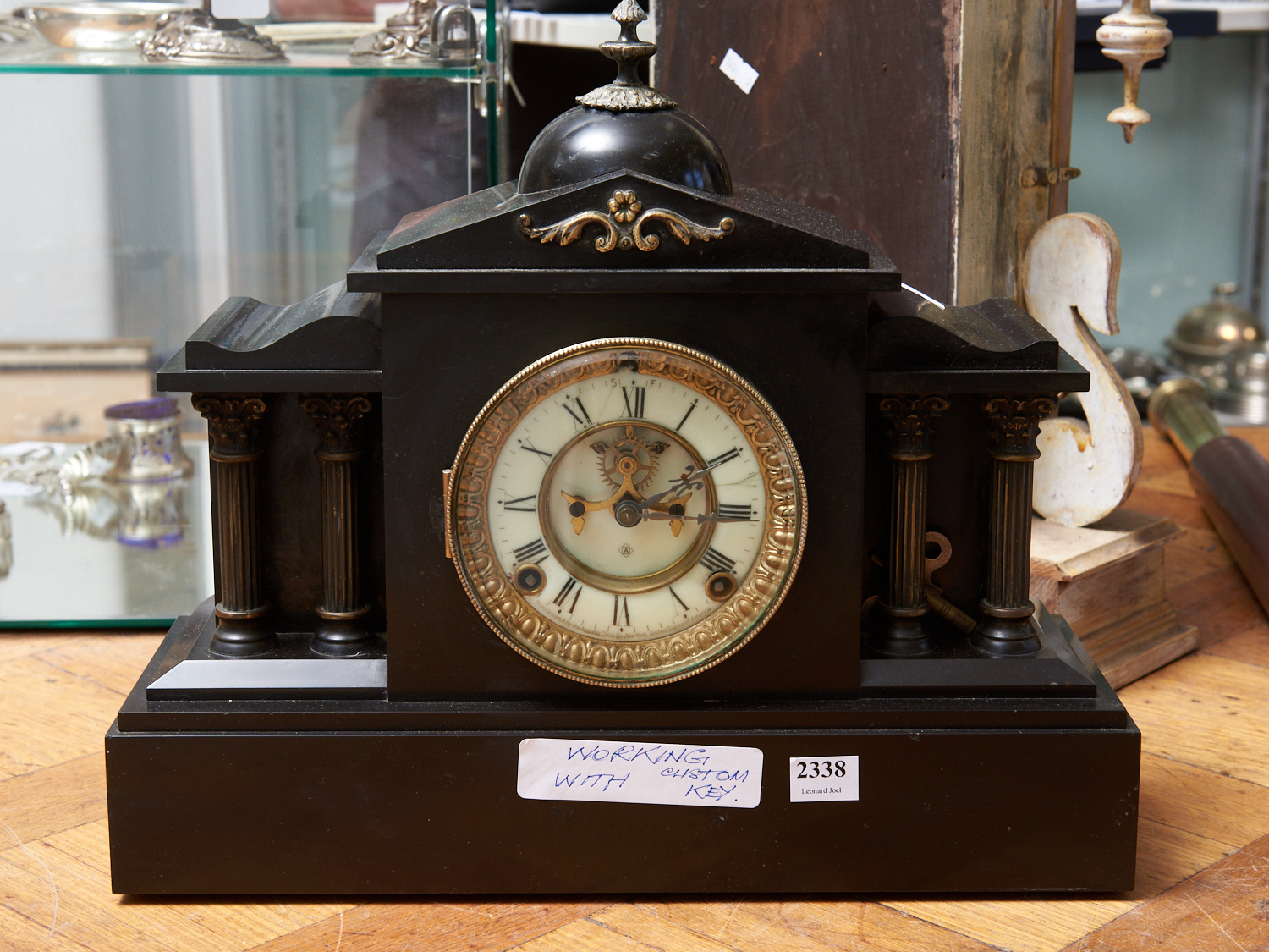 AN ANSONIA BLACK SLATE MANTLE CLOCK W.38CM LEONARD JOEL DELIVERY SIZE: MEDIUM