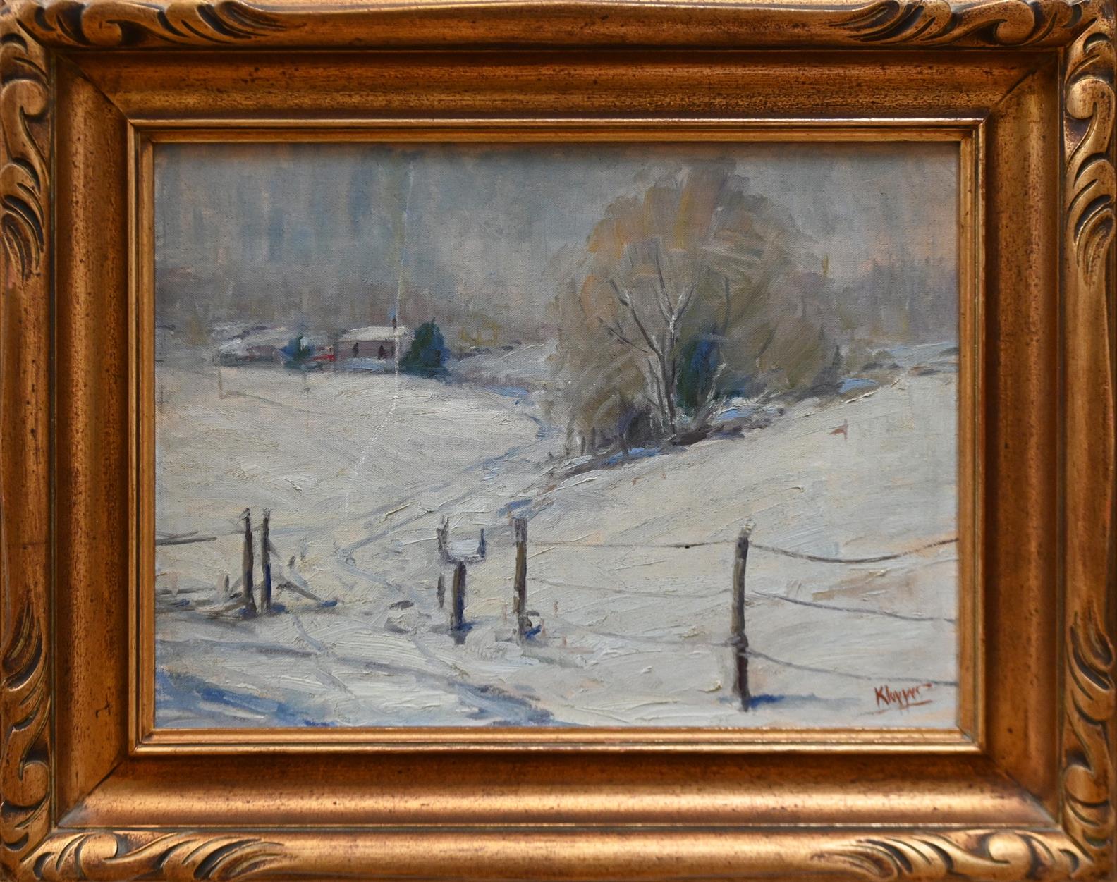 FRANK EARL KLEPPER, (SNOWY LANDSCAPE), OIL ON BOARD, SIGNED LOWER RIGHT, 29.5 X 39.5CM, FRAME SIZE: 46 X 55CM