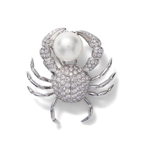 TIFFANY & CO. SOUTH SEA PEARL AND DIAMOND CRAB BROOCH, CIRCA 1996