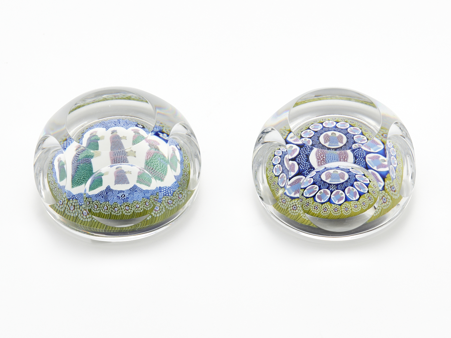 TWO WHITE FRIARS CHRISTMAS GLASS PAPER WEIGHTS, ONE WITH THREE WISE MEN AND THE OTHER WITH ANGELS DIA.8CM (LARGEST), LEONARD JOEL DELIVERY SIZE: SMALL