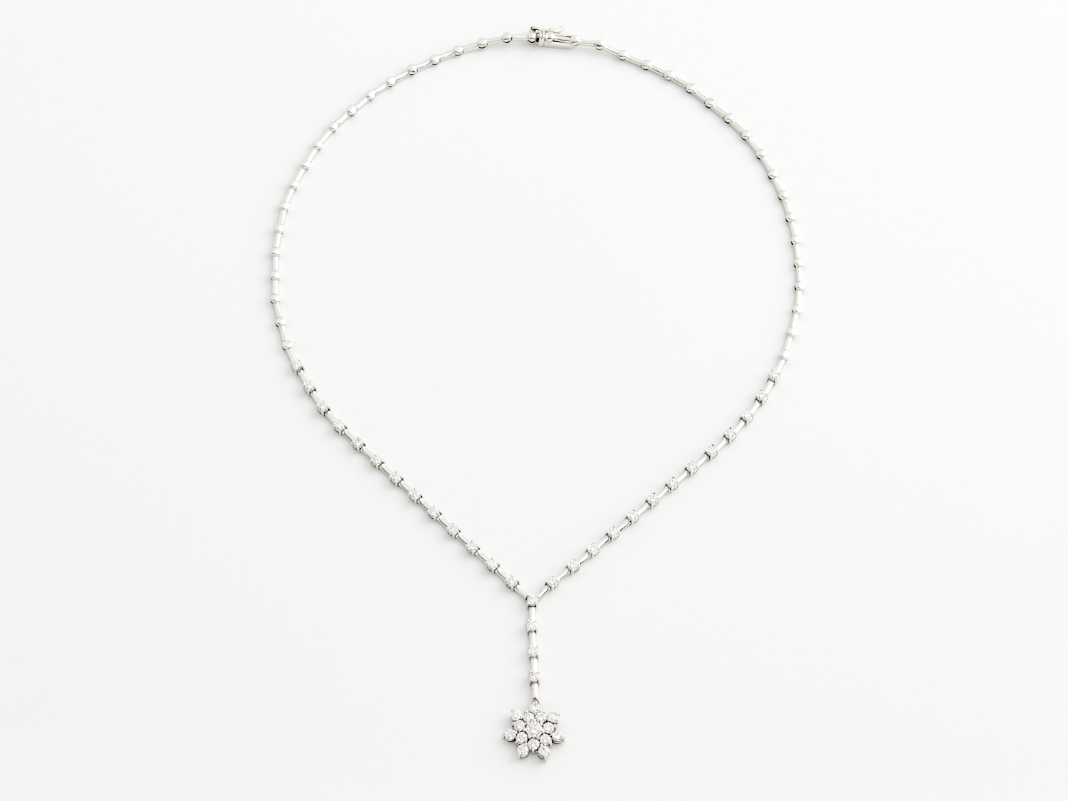 A DIAMOND PENDANT NECKLACE IN 18CT WHITE GOLD, 420MM