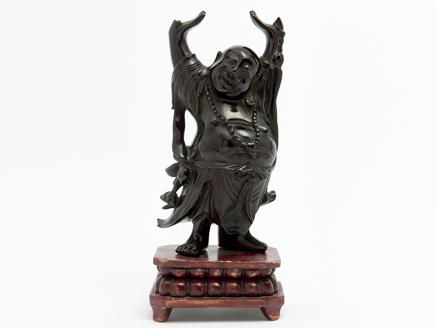 A CHINESE CARVED CHERRY AMBER STANDING BUDDHA (A/F) H.25CM, LEONARD JOEL DELIVERY SIZE: SMALL