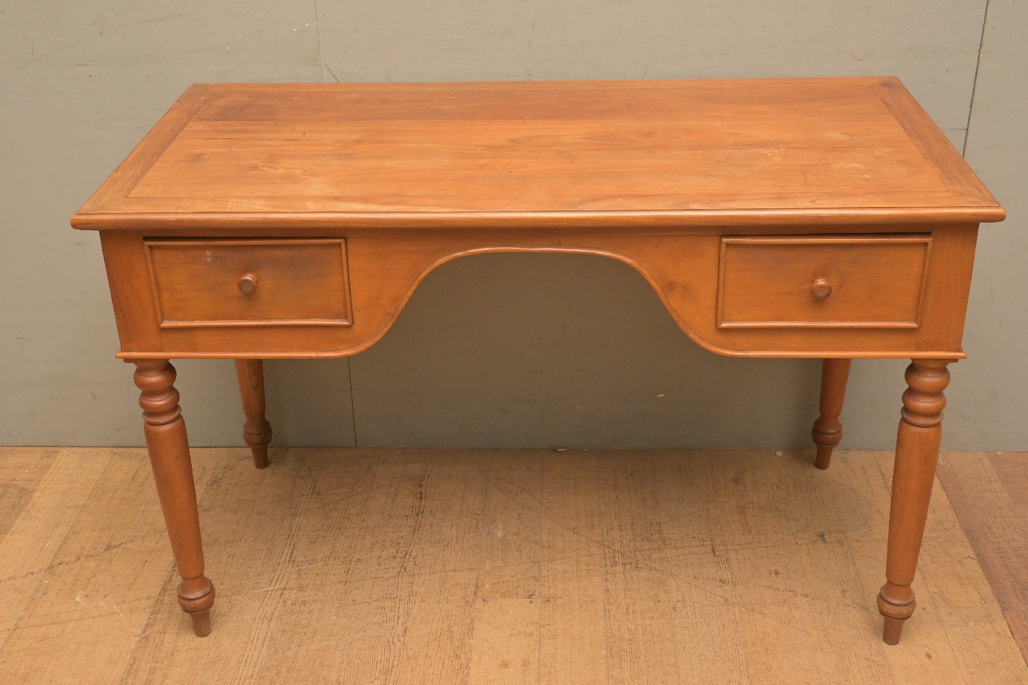 A TWO DRAWER HARDWOOD DESK (A/F) (76H X 120W X 59D CM) (LEONARD JOEL DELIVERY SIZE: LARGE)