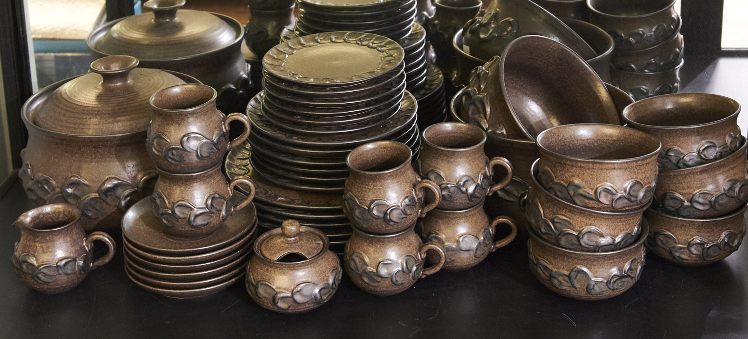A 1970'S HANDMADE STONEWARE DINNER SET FOR SIX (42 PIECES) BY DANISH/AUSTRALIAN POTTER VAGN NYKEL, LEONARD JOEL DELIVERY SIZE: LARGE