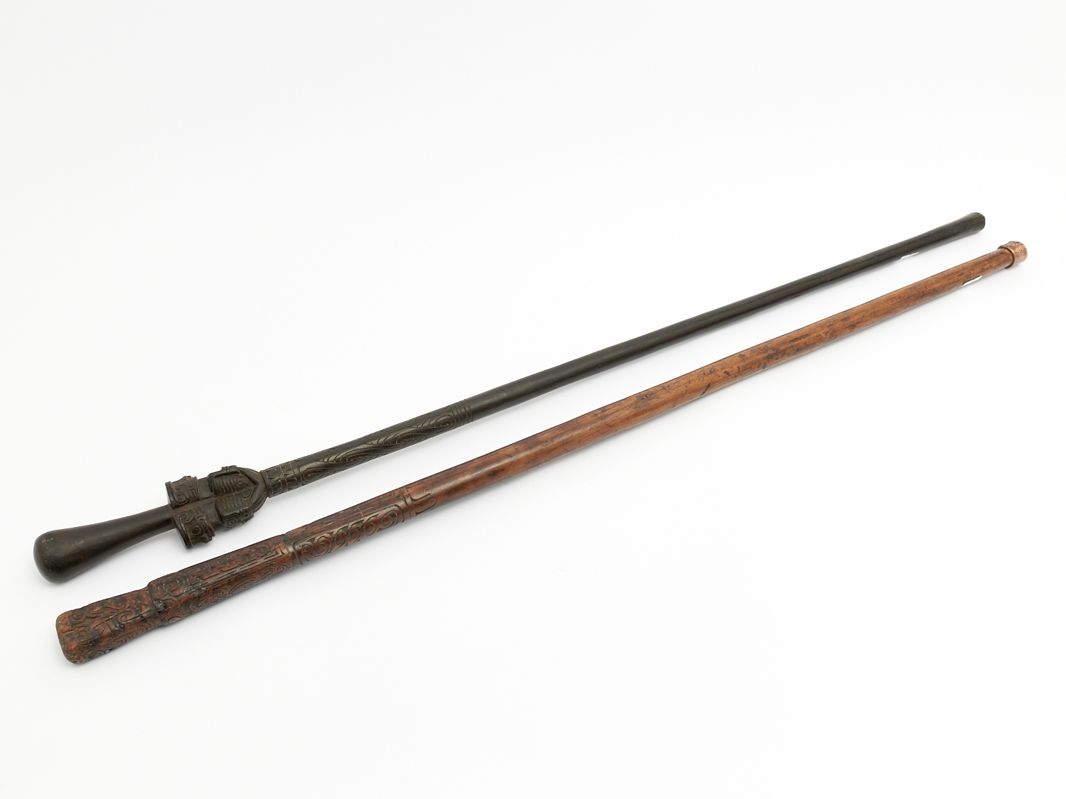 TWO 19TH CENTURY CARVED AND INCISED TRIBAL WALKING STICKS/STAFFS L.92CM (LONGEST), LEONARD JOEL DELIVERY SIZE: LARGE
