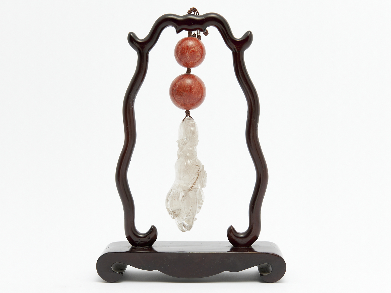 A RARE EARLY 20TH CENTURY ROSEWOOD FRAMED RUTILATED QUARTZ HEALING CRYSTAL OF A HANGING POMEGRANATE H.26CM, LEONARD JOEL DELIVERY SIZE: MEDIUM