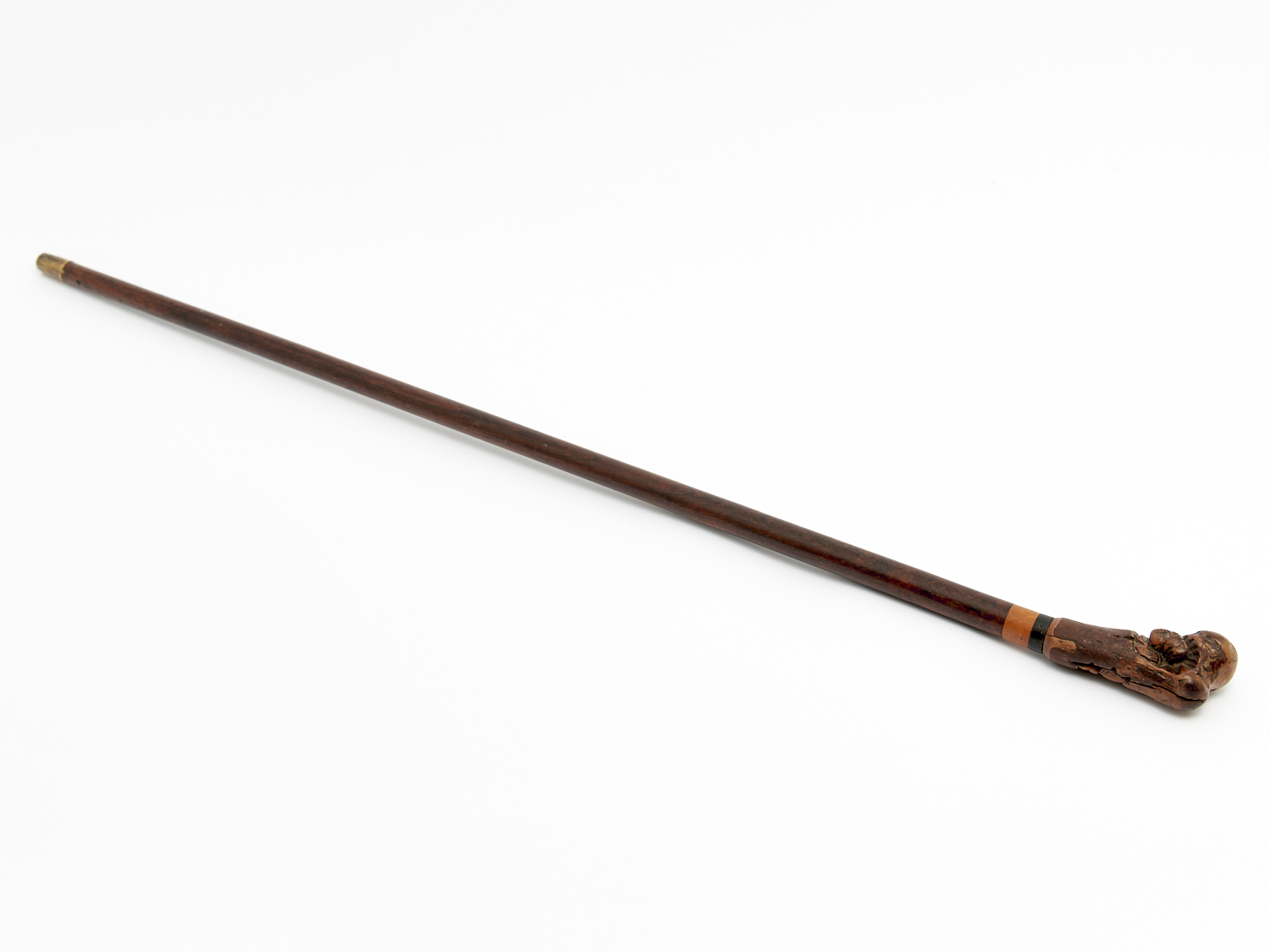 A 19TH CENTURY CARVED NOVELTY WALKING STICK WITH FIGURE EMERGING FROM FRONT AND BACK OF HANDLE L.82CM, LEONARD JOEL DELIVERY SIZE: SMALL