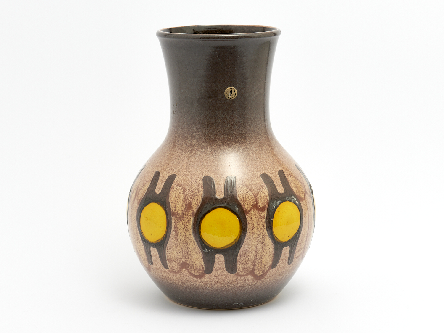 A LARGE 1970S WEST GERMAN LAVA GLAZE SIGNED VASE WITH ORIGINAL BARLOW STICKER H.30CM, LEONARD JOEL DELIVERY SIZE: MEDIUM