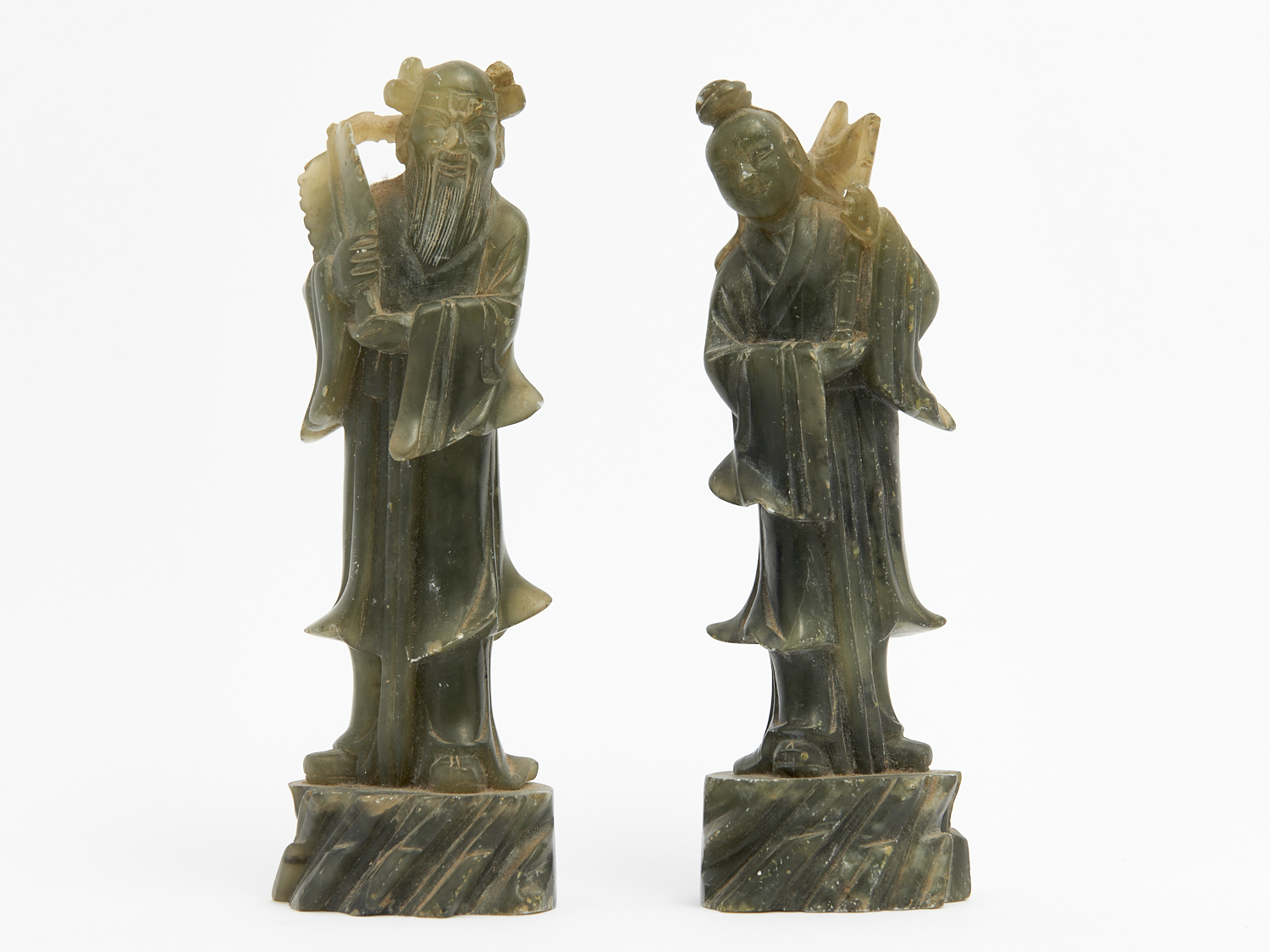A PAIR OF 1900S CHINESE JADE GOD AND GODDESS FIGURES H.18.5CM (TALLEST), LEONARD JOEL DELIVERY SIZE: MEDIUM
