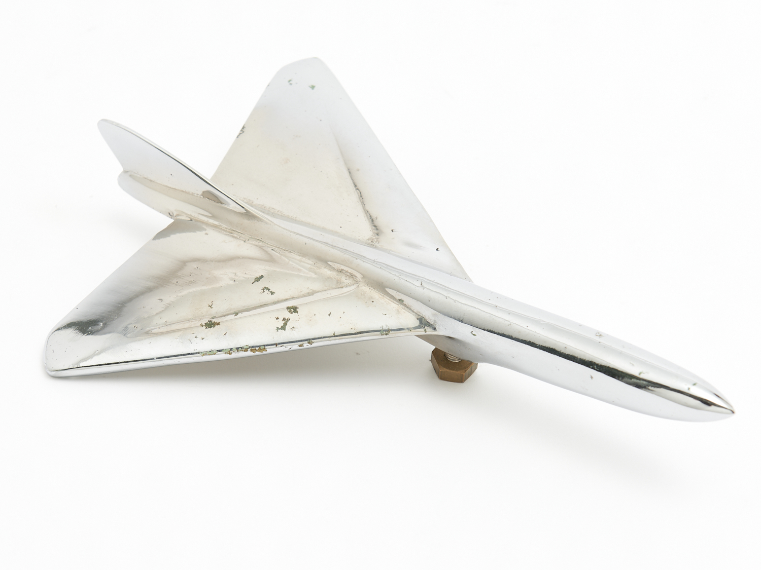 A 1950S CHROMED BRASS JET PLANE CAR MASCOT L.23CM, LEONARD JOEL DELIVERY SIZE: SMALL