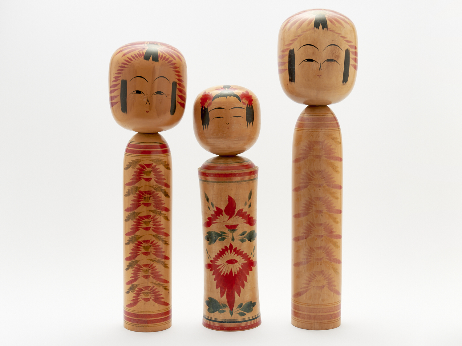 THREE EXTRA LARGE HAND PAINTED KOKESHI DOLLS H.67CM, LEONARD JOEL DELIVERY SIZE: X-LARGE