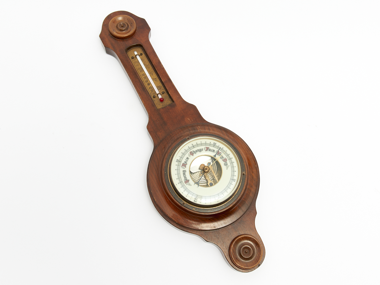 A GERMAN MAHOGANY CASED BAROMETER THERMOMETER L.48CM, LEONARD JOEL DELIVERY SIZE: MEDIUM