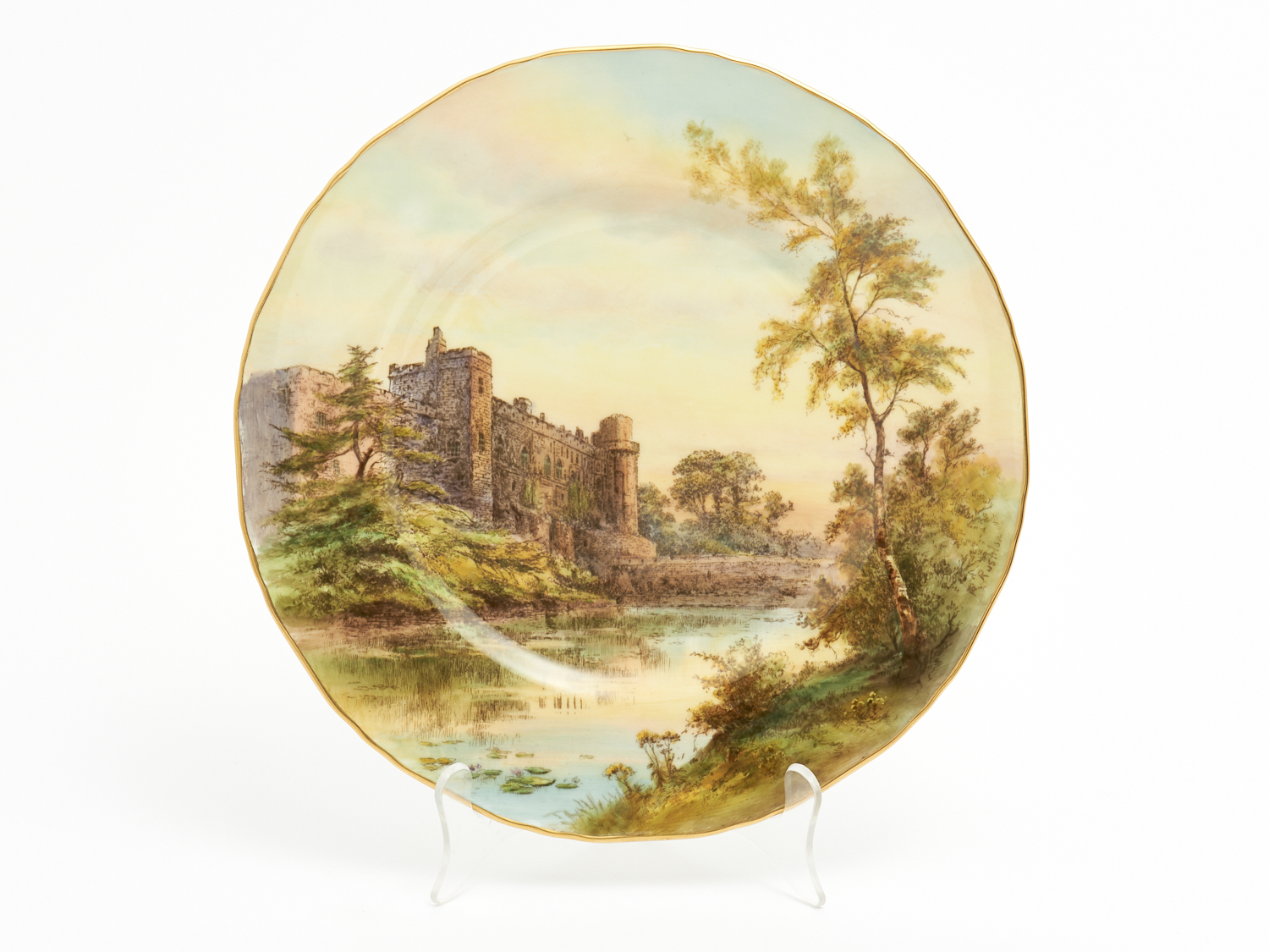 A HANDPAINTED ROYAL WORCESTER WARWICK CASTLE DISPLAY PLATE , SIGNED RUSHTON DIA.27.5CM, LEONARD JOEL DELIVERY SIZE: MEDIUM