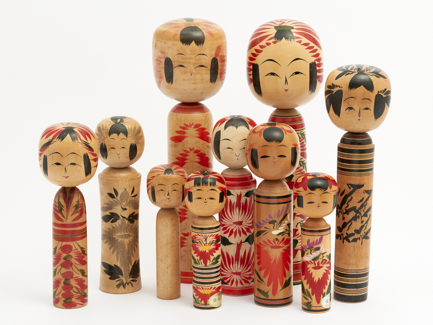 A COLLECTION OF TEN WOODEN KOKESHI DOLLS H.37CM (TALLEST), LEONARD JOEL DELIVERY SIZE: LARGE