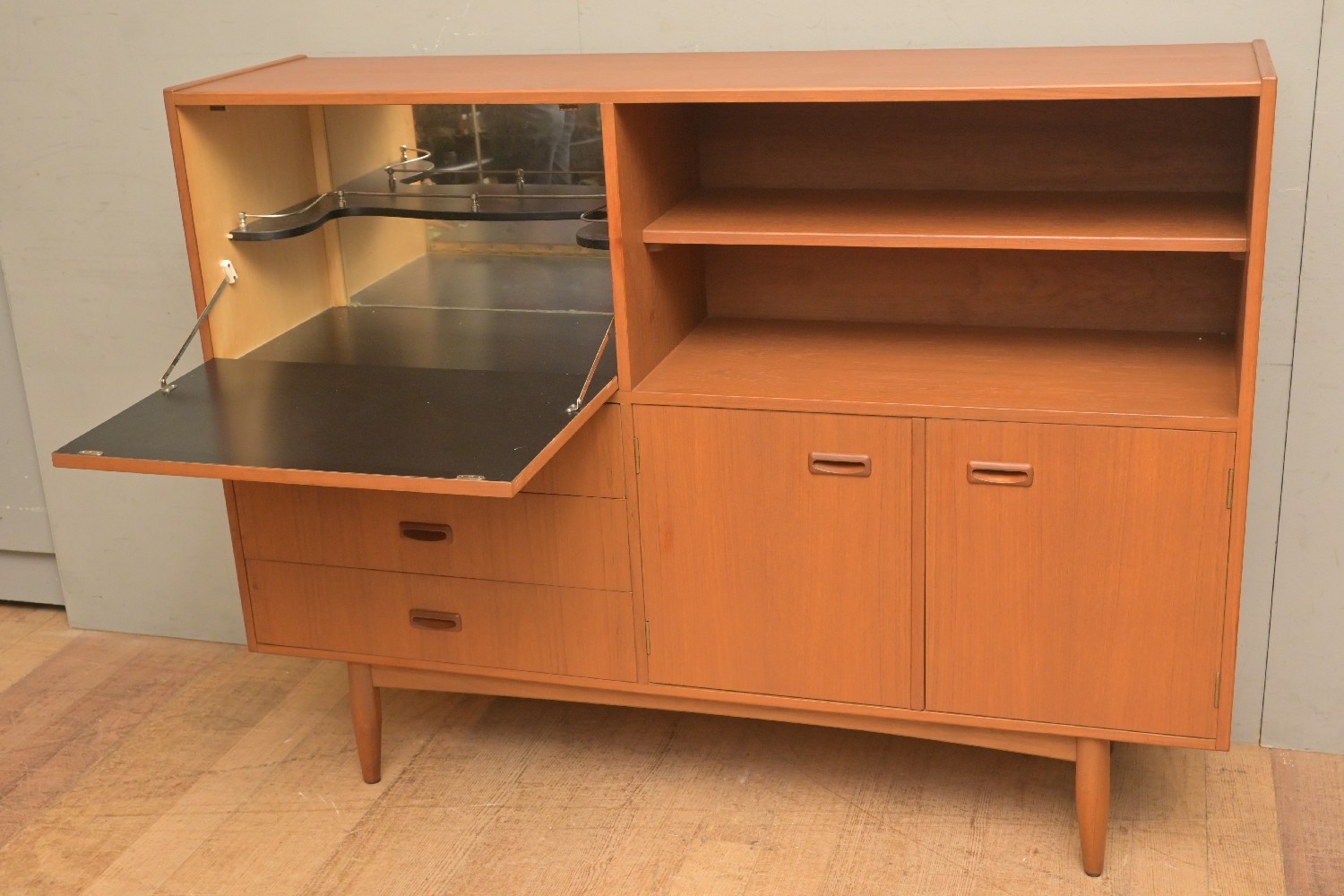 A 1960'S PARKER TEAK SIDEBOARD WITH INTERNAL DRINKS COMPARTMENT (114H X 151W X 40D CM) (PLEASE NOTE THIS HEAVY ITEM MUST BE REMOVED BY CARRIERS AT THE CUSTOMER'S EXPENSE. LEONARD JOEL STAFF CANNOT ASSIST CARRYING THIS ITEM) (LARGE ITEM)