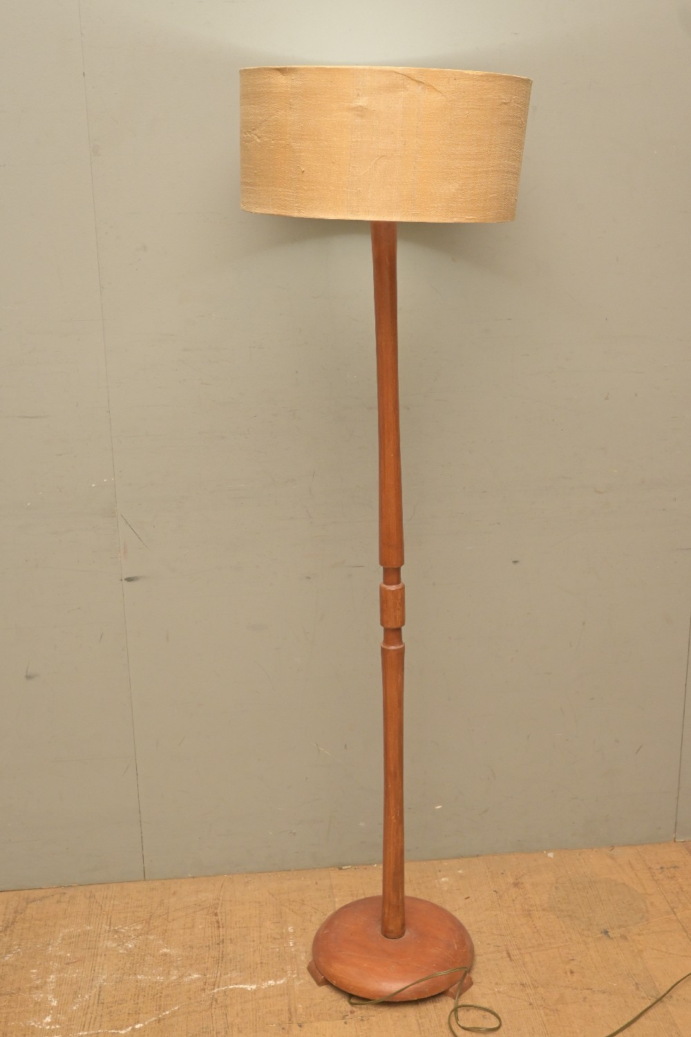 A MID-CENTURY TEAK STANDARD LAMP (A/F) (154H X 41DIA CM) (LEONARD JOEL DELIVERY SIZE: LARGE)