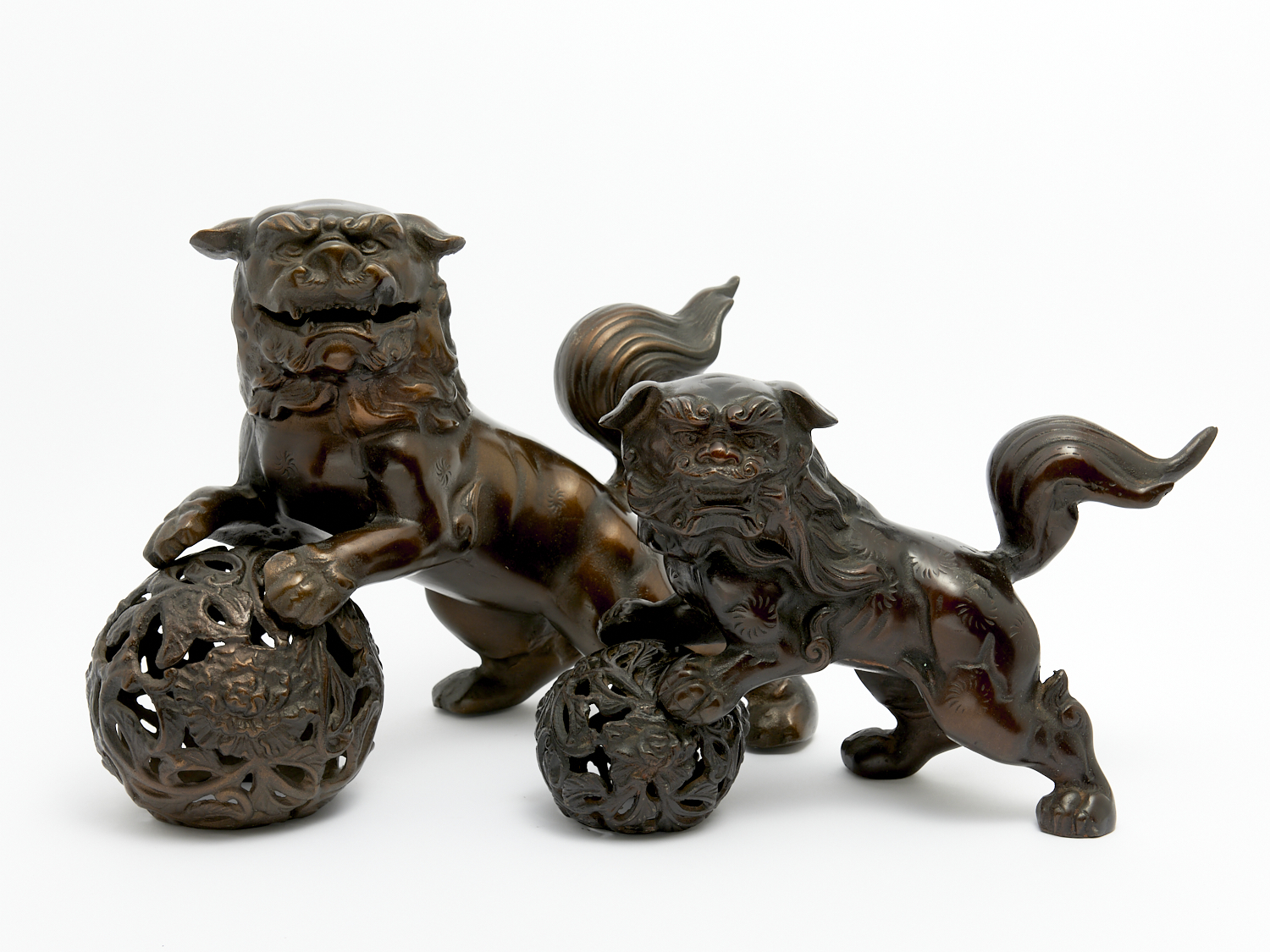 A PAIR OF GRADUATED CAST IRON FOO LIONS L.39CM (LARGEST), LEONARD JOEL DELIVERY SIZE: LARGE
