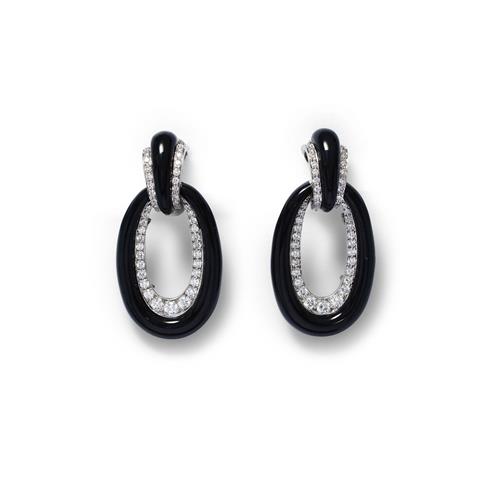 DAVID WEBB PAIR OF ONYX AND DIAMOND PENDANT EARRINGS