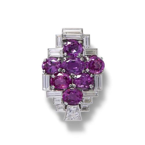 CARTIER PINK SAPPHIRE AND DIAMOND BROOCH, CIRCA 1940