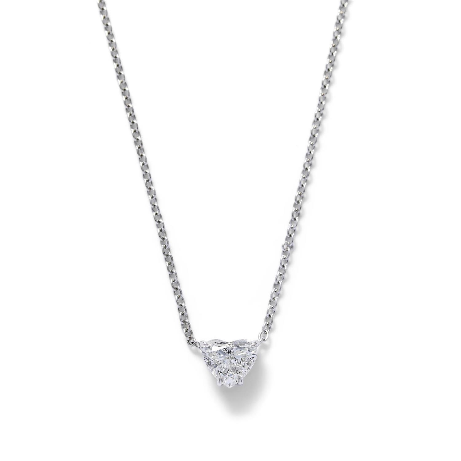The claw-set heart brilliant-cut diamond weighing 1.01 carats, is claw-set, supported by a fine trace link chain, mounted in platinum, inner circumference 465mm, adjustable to 435mm.