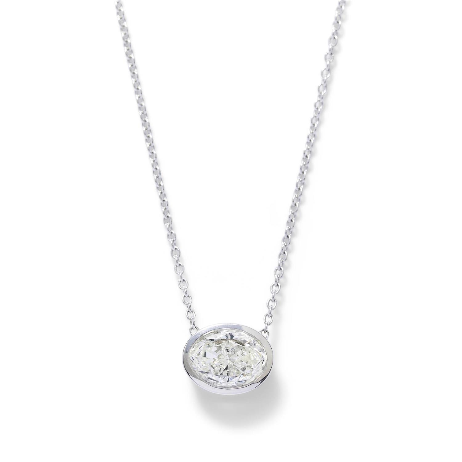 The collet-set oval brilliant-cut diamond weighing 2.01 carats, is supported by a fine trace link chain, mounted in 18ct white gold, inner circumference 465mm, adjustable to 435mm.