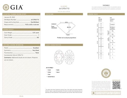 Accompanied by a GIA report numbered 6412954710, dated 25 January 2022, stating that the 2.01 carat diamond is natural, I colour, SI2 clarity, laser inscribed.