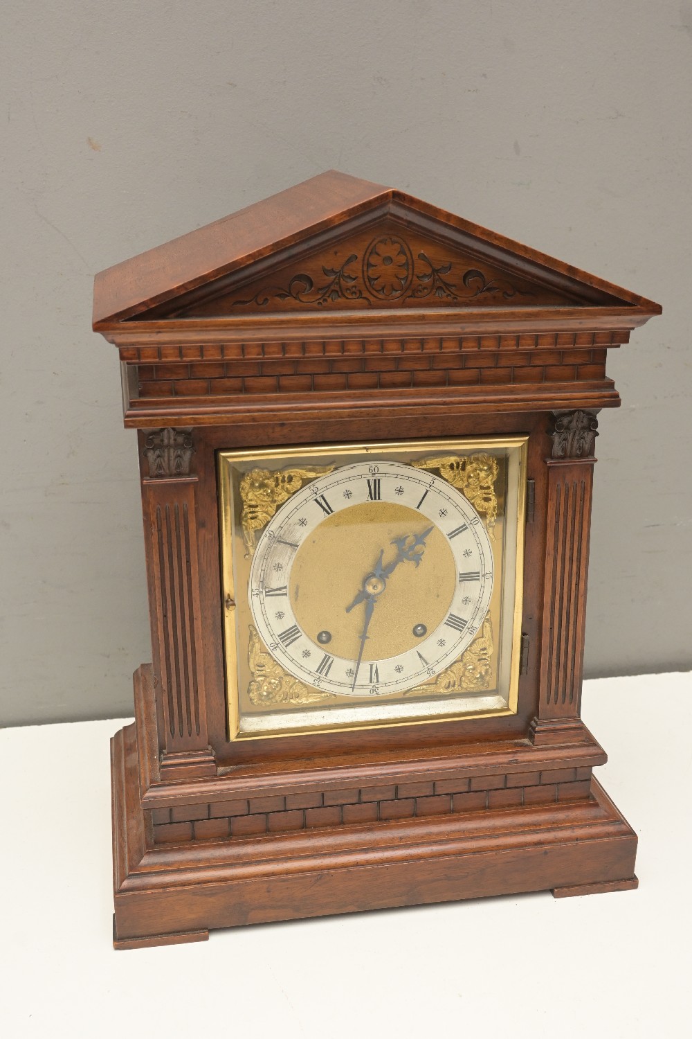 AN EARLY 20TH CENTURY WINTERHALDER & HOFMEIER MAHOGANY CASED MANTEL CLOCK (42H X 32W X 19D CM) (LEONARD JOEL DELIVERY SIZE: MEDIUM)