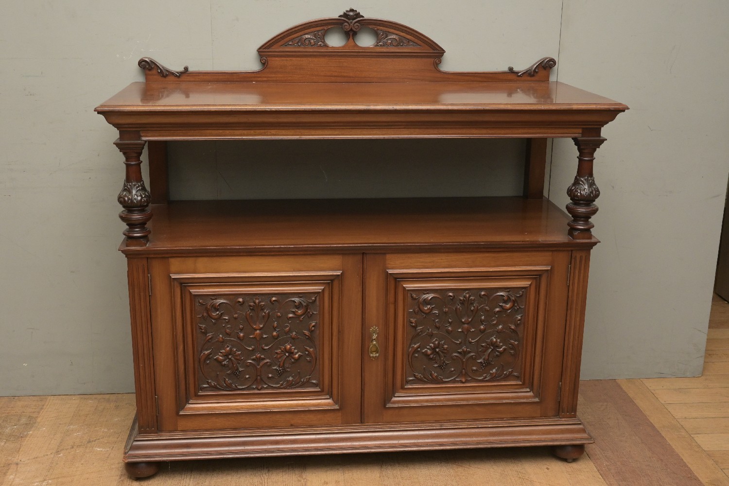 AN 1880s WALNUT SIDEBOARD, PROBABLY FRENCH - KEY IN OFFICE (A/F) (131H X 137W X 60D CM) (PLEASE NOTE THIS HEAVY ITEM MUST BE REMOVED BY CARRIERS AT THE CUSTOMER'S EXPENSE. LEONARD JOEL STAFF CANNOT ASSIST CARRYING THIS ITEM) (X-LARGE ITEM)