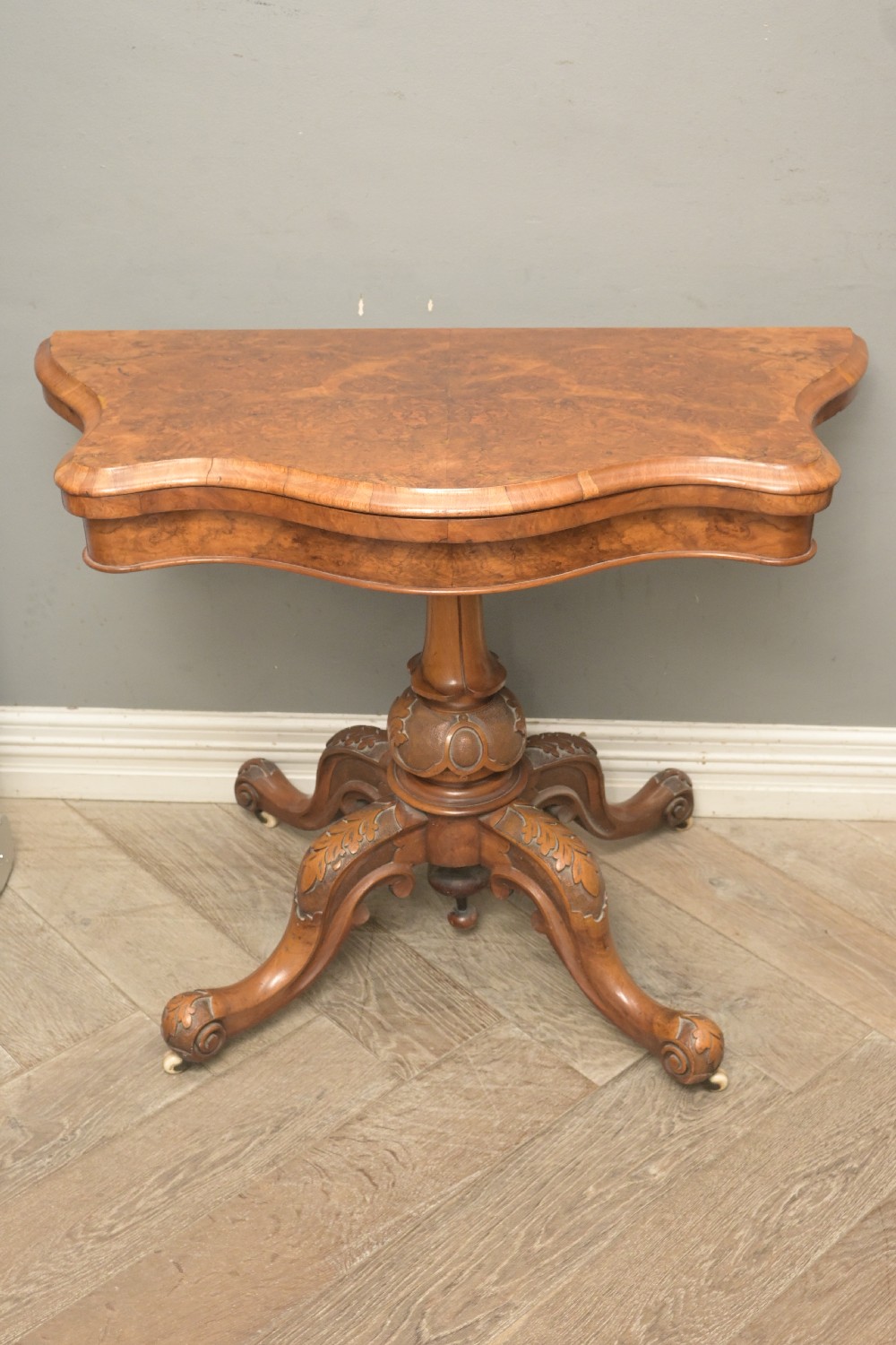 A VICTORIAN FIGURED WALNUT GAMES TABLE (A/F) (73H X 92W X 45D CM) (LEONARD JOEL DELIVERY SIZE: LARGE)