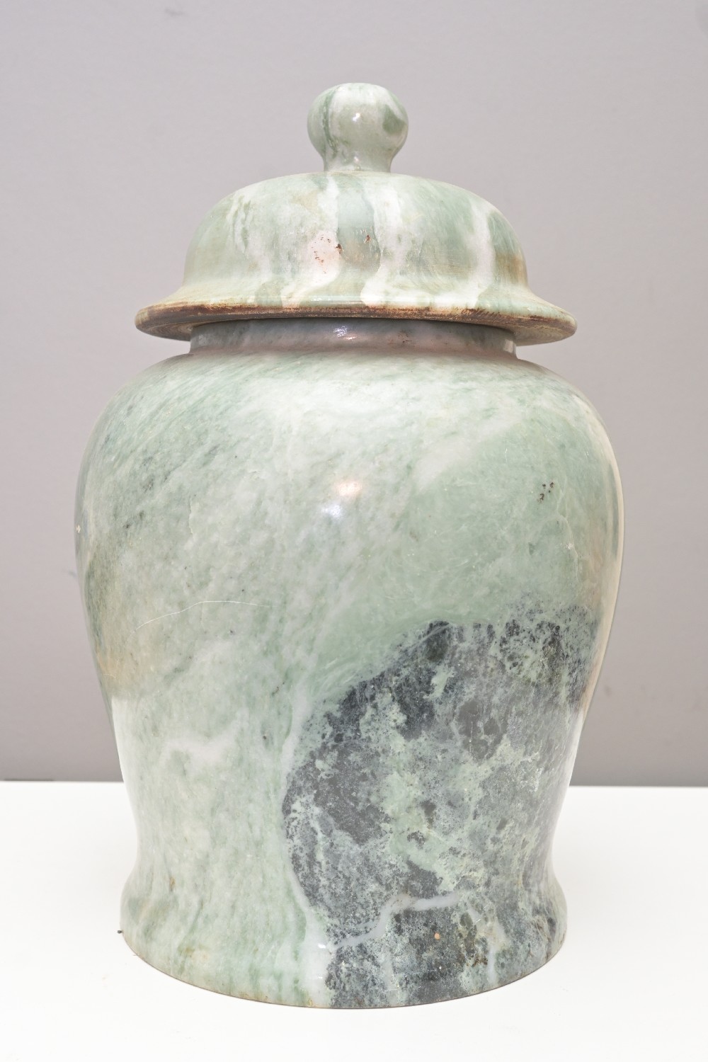 A MARBLE JAR WITH LID - NO BOTTOM (37H X 22DIA CM) (LEONARD JOEL DELIVERY SIZE: LARGE)