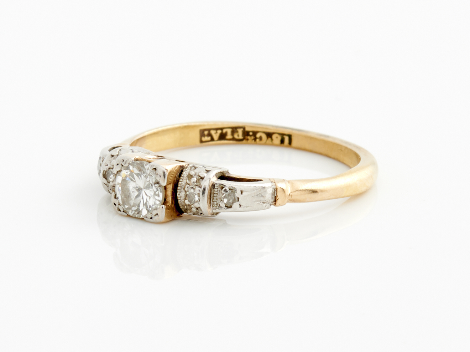 AN ANTIQUE DIAMOND RING IN 18CT GOLD AND PLATINUM, SIZE K, 2.4GMS