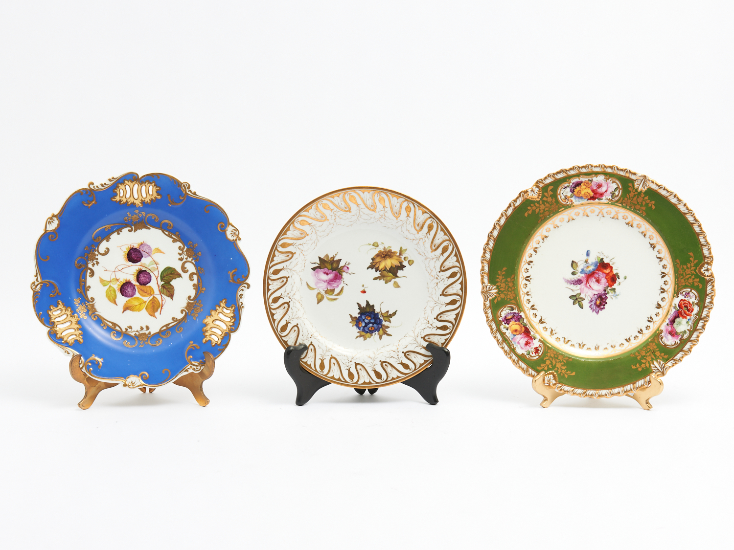 THREE 19TH CENTURY ENGLISH PORCELAIN PLATES INCL. AN EXAMPLE BY BARR, FLIGHT & BARR DIA.24CM (LARGEST), LEONARD JOEL DELIVERY SIZE: LARGE
