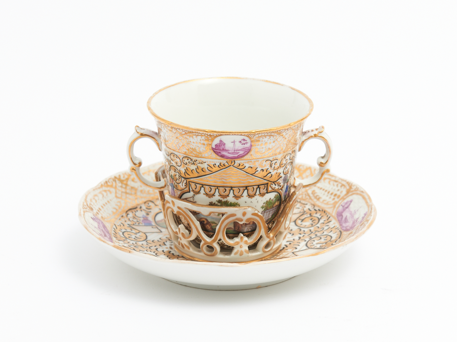 A BERLIN KPM TREMBLEUSE TEACUP AND SAUCER WITH CHINOISERIE DESIGN 1800-1809 DIA.14CM (SAUCER), LEONARD JOEL DELIVERY SIZE: MEDIUM